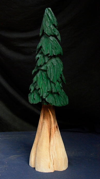 16" Chainsaw-Carved 3D Green Tree Sculpture | Original California Cedar Wood Art | Unique One-Of-A-Kind Creation by Artist Jess Alice