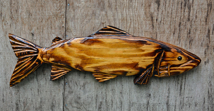 Wall Mount Fish Sculpture | 32"x 9" Wall Hanging Chainsaw Carving | California Pine Wood Carved & Sealed | Artist & Carver Jess Alice