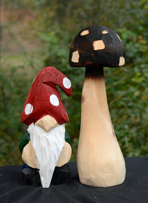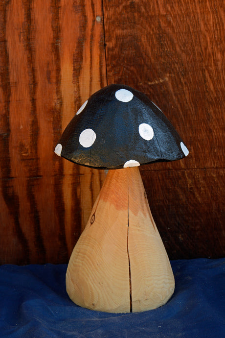 Black Top Chainsaw Carved Mushroom | 14" Painted 3D Chainsaw Carving | Raw California Cedar Original One-Of-A-Kind Artwork | Artist & Carver Jess Alice
