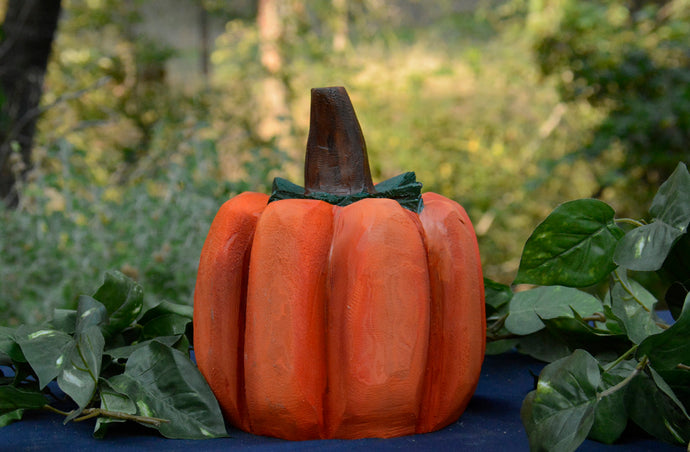 Chainsaw Carved Mini 6" Pumpkin | Unique California Cedar Wood Sculpture by Artist Jess Alice"