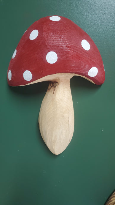 Chainsaw Carved Wall Mushroom | Wall-Hanging Chainsaw Carving | Raw California Cedar Original One-Of-A-Kind Artwork | Artist & Carver Jess Alice