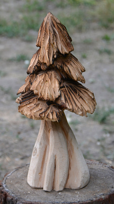 Tree Sculpture | 12" 3D - Free Standing Chainsaw Carving | Raw California Cedar Wood Carved Artwork | Artist & Carver Jess Alice