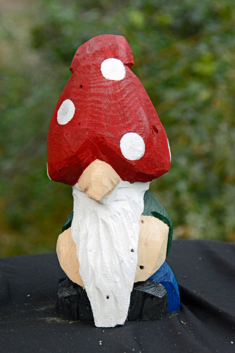Mini Garden Gnome Sculpture | 10" Chainsaw Carving, Hand-Painted Original Artwork| Artist & Carver Jess Alice