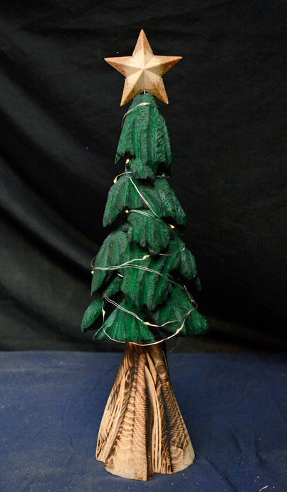 Chainsaw Carved Christmas Tree -Painted | Raw California Cedar Wood Sculptures | Original One-Of-A-Kind Artwork | Artist & Carver Jess Alice