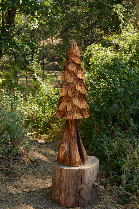 42" Chainsaw Carved Tree Sculpture | 3D Raw California Cedar One-Of-A-Kind Original Artwork | Artist & Carver Jess Alice
