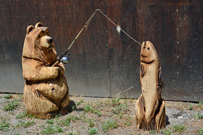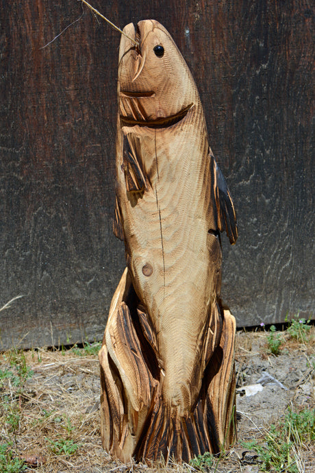 2ft Jumping Fish Out of Water - Chainsaw Carved Wood Sculpture