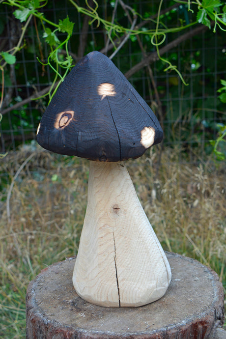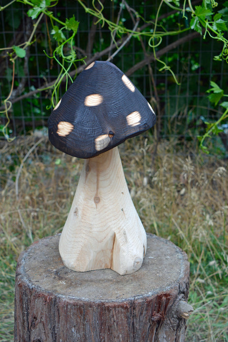 Copy of 13" Chainsaw Carved Mushroom | California Cedar Original One-Of-A-Kind Artwork | Artist & Carver Jess Alice