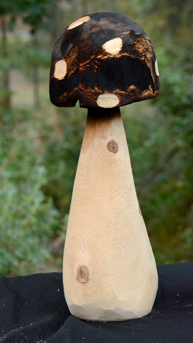 12" Chainsaw Carved Mushroom | California Cedar Original One-Of-A-Kind Artwork | Artist & Carver Jess Alice