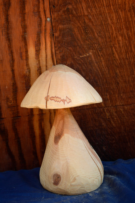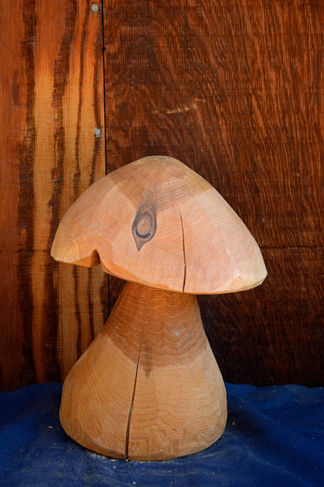 Chainsaw Carved Mushroom | 13" 3D Chainsaw Carving | Raw California Cedar Original One-Of-A-Kind Artwork | Artist & Carver Jess Alice
