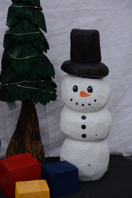 13 inch Snowman Chainsaw-Carved Christmas Decoration | X-Mas Holiday Home Decor
